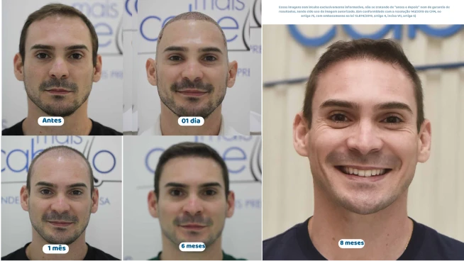 Utilizamos a técnica FUE, menos invasiva, sem cicatriz visível e com recuperação rápida.